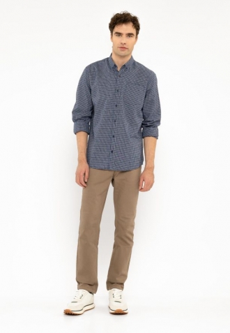 K-NELS je pánská košile, která se vyznačuje klasickým jemným kostkovaným vzorem. Tato pánská košile má límec se zapínáním na dva knoflíky. Vnitřní strana výstřihu pánské košile je lemována ozdobným lemováním a na levé straně hrudi je praktická kapsička. Jedná se o pohodlnou a stylovou košili s dlouhým rukávem, která se skvěle hodí na běžné nošení, na víkend i na různé méně formální příležitosti.
