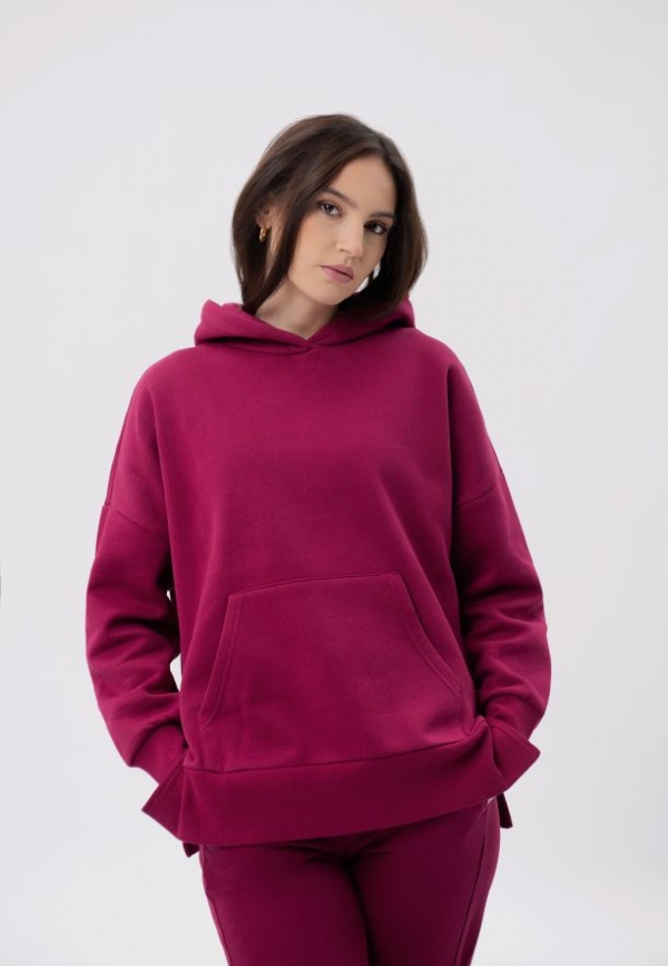 B-LOVE je dámská mikina s oversize střihem. Tato módní mikina je v krásné tmavě růžové barvě a zespodu má nadýchaný povrch. Díky tomu je hřejivá a příjemná na dotek. Je vyrobena z bavlny s polyesterem, takže poskytuje pohodlí a v kombinaci se sníženou linií ramen také volnost pohybu.