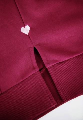 Dámská mikina B-LOVE vyniká především motivem srdíček. Ta jsou hlavním ozdobným prvkem mikiny. Vyšívané srdce s nápisem Volcano najdete na prostorné mikině. Jedno srdce bylo umístěno také na boku této tmavě růžové mikiny. Mikina je zakončena volným širokým lemem a má našitou klokaní kapsu, do které si můžete pohodlně uložit ruce.