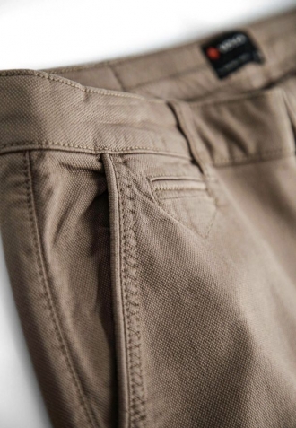 Kalhoty jsou navíc vyrobeny z mírně elastického materiálu, který má mírně vypouklou strukturu! Látka obsahuje kromě přírodní bavlny zajišťující prodyšnost i malé množství elastanu. Díky tomu jsou kalhoty mírně pružné a materiál vyztužený. Díky tomu chino kalhoty nejen skvěle padnou na postavu, ale také zajistí neomezené pohyby.