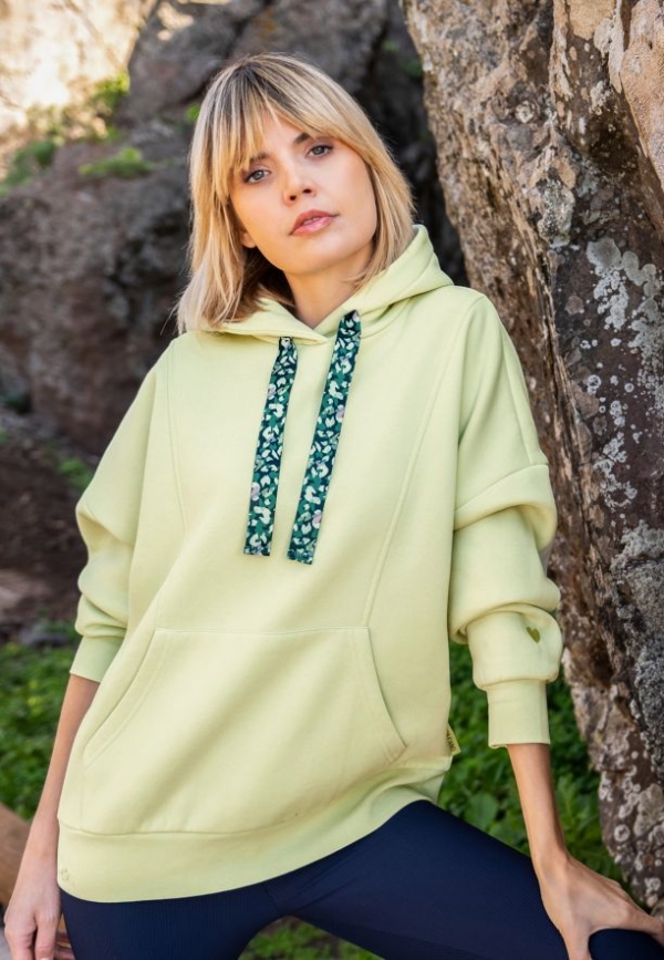 B-ELEVEN je dámská mikina zahalujícího střihu, která poskytuje přirozené pohodlí. Hřejivý nadýchaný povrch na vnitřní straně vás zahalí v chladnějších dnech a díky střihu Comfort Fit a snížené linii ramen mikina zaručuje volnost pohybu a dobře ladí se sportovním stylem. Mikina v limetkové barvě je ideální pro každodenní nošení, od džínů po tepláky.