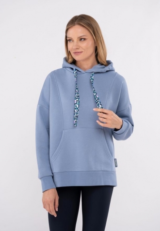 Dámská mikina má prostornou kapsu na břiše. Jedná se nejen o praktický doplněk, ale také o prvek, který podtrhuje ležérní charakter mikiny. Kapuce s barevnými pásky dodává odlišnost a umožňuje individuální přizpůsobení, zatímco ozdobné prošití na přední a zadní straně je výrazným detailem mikiny B-ELEVEN.