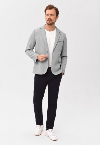 Sako ve sportovním stylu je dokonalou kombinací elegance a pohodlí. Je vyrobeno z měkkého a na dotek příjemného úpletu a zaručuje volnost pohybu, takže je ideální pro každodenní styling. Regular fit střih zvýrazňuje siluetu, aniž by omezoval pohyb. Sako má zapínání na dva knoflíky a klasické rovné klopy pro nadčasový vzhled.