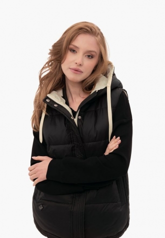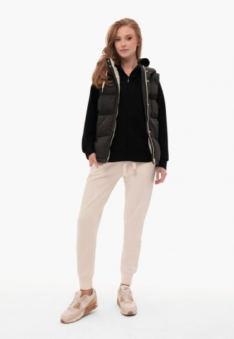 Dámská vesta V-AVRIL v černé barvě je ideální jako další vrstva v přechodném období. Široké prošívání udržuje výplň na svém místě a poskytuje příjemné teplo. A zapínání na zip skryté pod lemem na patentky poskytuje dodatečnou ochranu proti větru, dešti a chladu. Dvě kapsy na zip jsou praktickým řešením pro bezpečné uložení drobných předmětů. Zaoblený spodní lem dodává vestě ležérní, mírně oversized vzhled.