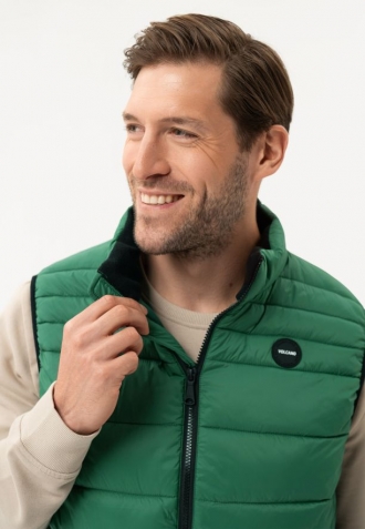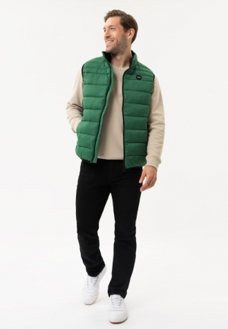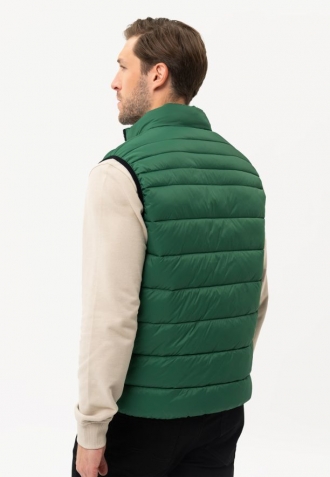 Pánský šatník potřebuje k úplnosti pohodlnou vestu! Proto v obchodě s pánskou módou Volcano nemohla chybět klasická zelená vesta s výplní ze syntetických vláken. V-FINO je prošívaná vesta klasického jednoduchého střihu a lehké konstrukce. Nízkou hmotnost mají na svědomí polyesterová vlákna, která váží velmi málo a přitom dostatečně izolují.