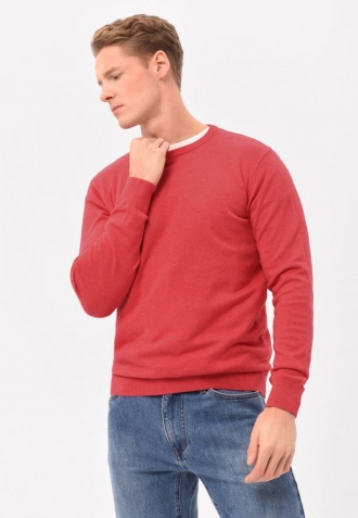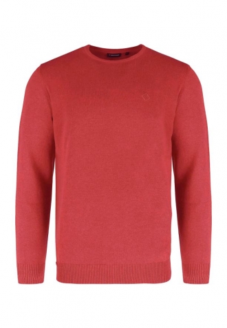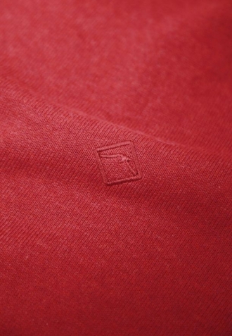 Svetr S-RADO má červenou barvu a je hladký. Jednoduchý design je zpestřen vyšitým detailem loga značky na levé straně.