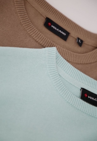 Pánský svetr S-RADO s půlkruhovým výstřihem je ušitý z lehkého úpletu vytvořeného z přírodních bavlněných vláken. Materiál je šetrný k pokožce a jemný na dotek. Strategická místa svetru jsou zpevněna žebrovanými lemy. Ty jsou použity jak u krku, tak ve spodní části rukávů a také v pase. Díky těmto prvkům svetr chrání před chladem a zároveň zajišťuje dokonalou siluetu, aniž by klouzal.