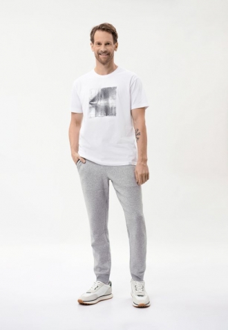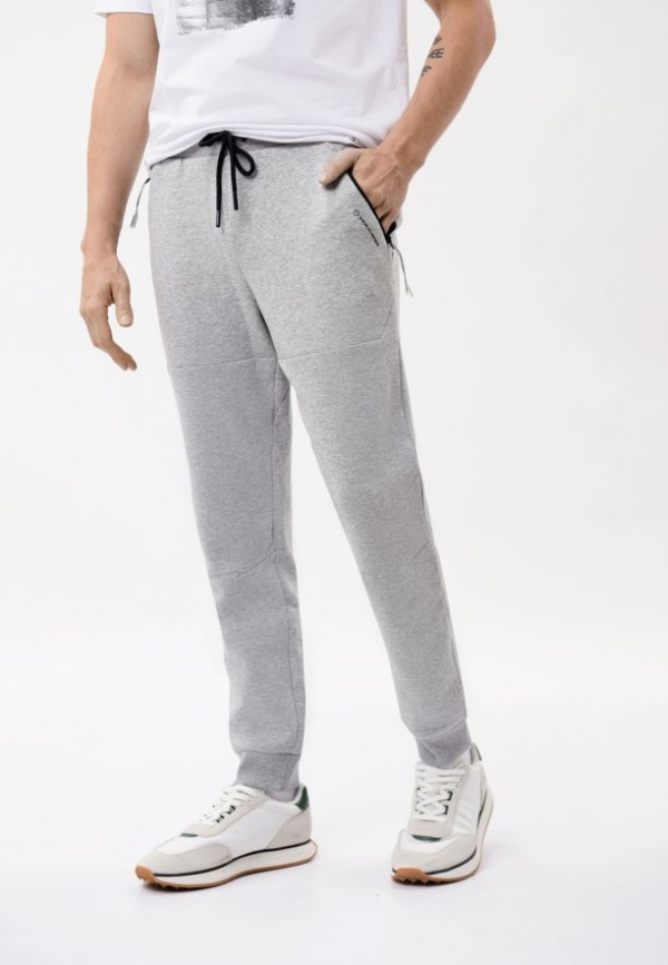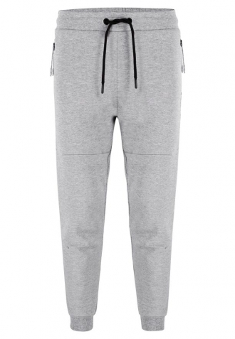 U tohoto modelu jsou kapsy umístěny vpředu. Jsou zde dvě šikmé kapsy na zip. Jedná se o velmi praktické řešení: kapsy na zip bezpečně pojmou nezbytné věci, jako je telefon nebo klíče. Pánské tepláky jsou vyrobeny z lehkého úpletu příjemného na dotek a na přední a zadní straně mají pogumované detaily.