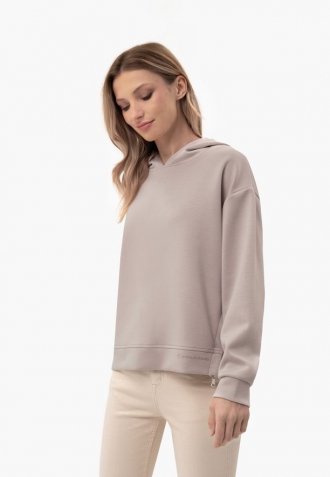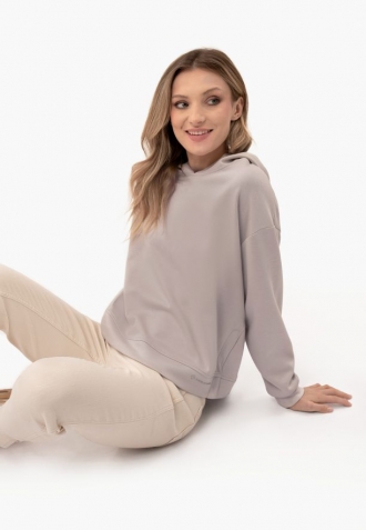B-MIDA je dámská mikina pro volný čas v krémové barvě. Lze ji kombinovat s širokými tepláky N-EVA a vytvořit tak ležérní teplákovou soupravu.