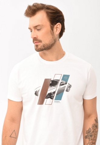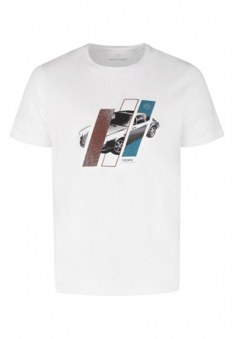 T-SITE je náš hold fanouškům motorismu. Potisk zobrazující sportovní auto, obohacený o kontrastní barevné pruhy, dodává modelu výraznost a dynamiku. Díky univerzální bílé základně se tričko ideálně kombinuje s džínami, chino kalhotami nebo šortkami a vytváří módní každodenní outfity.