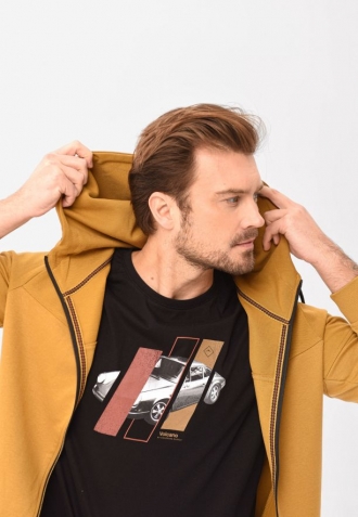 T-SITE je náš hold fanouškům motorismu. Potisk zobrazující sportovní auto, obohacený o kontrastní barevné pruhy, dodává modelu výraznost a dynamiku. Díky univerzální černé základně se tričko ideálně kombinuje s džínami, chino kalhotami nebo šortkami a vytváří módní každodenní outfity.