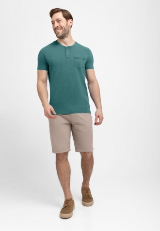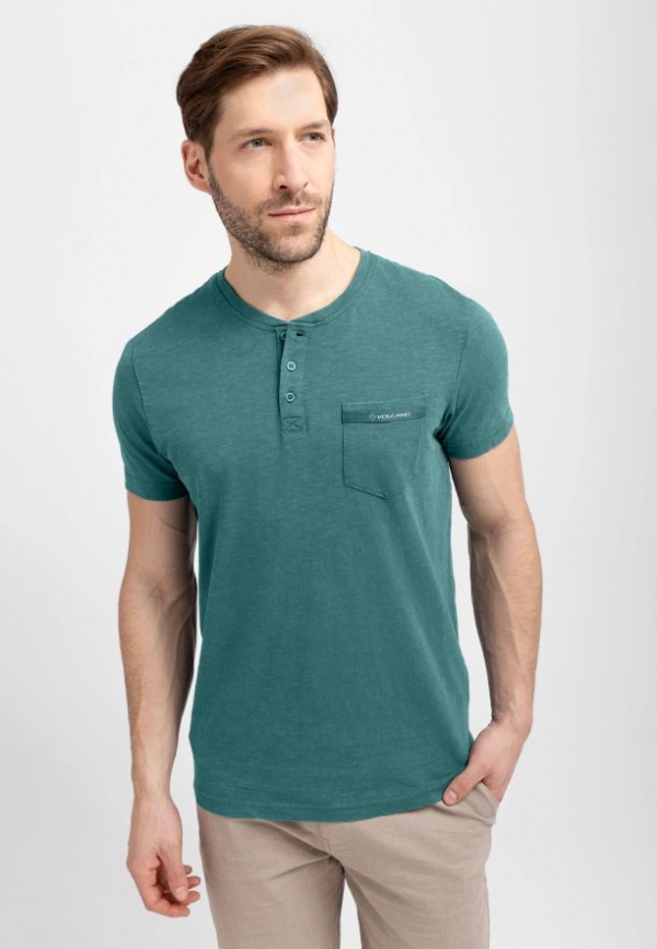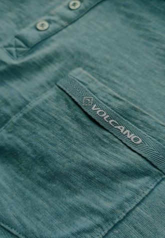 Pokud jste fanouškem triček typu polo, ale nemáte rádi klasické, zpevněné límečky, pak se určitě seznamte s naším novým pánským tričkem T-APY. Jeho charakteristickým rysem je výstřih rozepínaný třemi knoflíky a půlkulatý výstřih s žebrováním (tzv. výstřih henley). Charakteristický rozepínací výstřih s knoflíky mu dodává neotřelý styl a kapsa na prsou s kontrastním lemem a jemným logem Volcano dodává celku originální akcent. Stojí za to zdůraznit, že použití knoflíků umožňuje změnu charakteru výstřihu. Po jejich rozepnutí získáme výstřih s o něco menším úhlem než u standardních triček s výstřihem do V.
