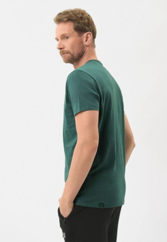 Zelené tričko T-ENDE s potiskem oživí váš šatník. Je to díky kombinaci měkkého přírodního materiálu a originální struktury tkaniny. Díky tomu není pánské tričko jednobarevné, ale má jedinečnou strukturu. Bavlněné tričko je navíc zárukou měkkých a přírodních vláken. Příjemně obepne tělo ve všech ročních obdobích. V létě nepřehřívají pokožku a v zimě jsou dokonalým doplňkem mikiny. Všimněte si také půlkruhového výstřihu zakončeného teplákovým lemem. Ten dokládá sportovní a uvolněný styl trička.