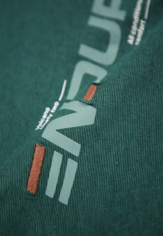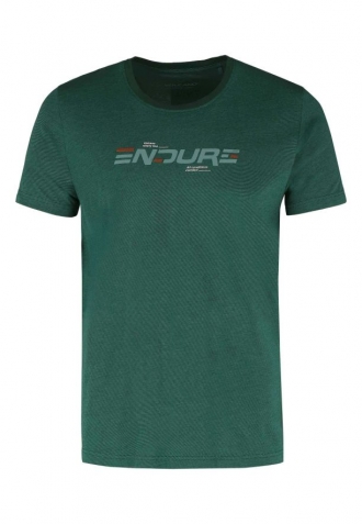 Tričko T-ENDE s krátkým rukávem má sportovní charakter. Ten je ještě zdůrazněn potiskem „Endure“, který znamená vytrvalost. Je motivující zejména pro sportovce a sportovkyně a odpovídá stylu celého modelu. Tričko s krátkým rukávem navíc dokonale zvýrazňuje mužskou siluetu.