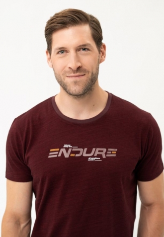 Tričko T-ENDE s krátkým rukávem má sportovní charakter. Ten je ještě zdůrazněn potiskem „Endure“, který znamená vytrvalost. Je motivující zejména pro sportovce a sportovkyně a odpovídá stylu celého modelu. Tričko s krátkým rukávem navíc dokonale zvýrazňuje mužskou siluetu.