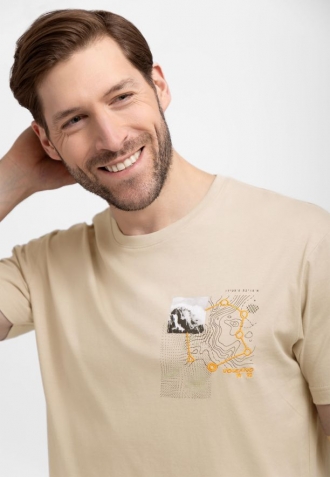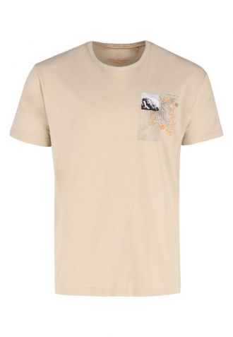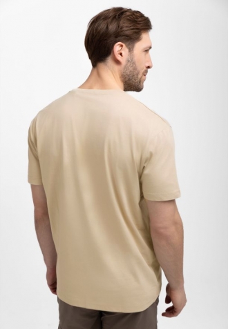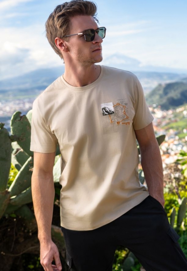 Pánské tričko T-MAP je tričko v béžové barvě v basic stylu, které je prolomeno malým, ale velmi zajímavým potiskem. Na místo kapsy na hrudi naši grafici umístili potisk hypsometrické mapy a hor. Celek je ozvláštněn oranžovou výšivkou a jistě osloví milovníky horských túr.