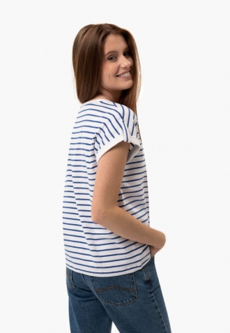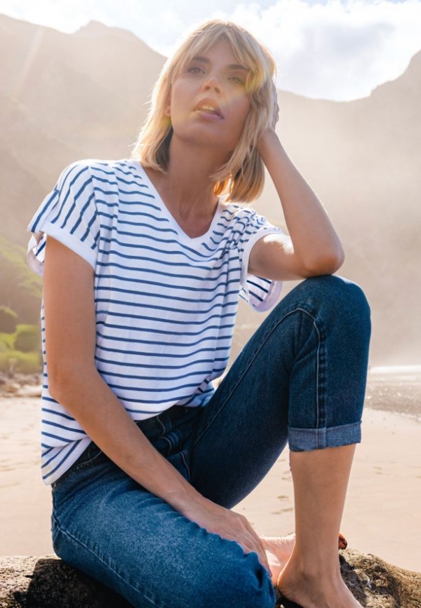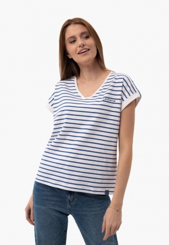 Ležérní styling nevylučuje efektní řešení! Dámské pruhované tričko T-PORTO se hodí ke kalhotám i sukním. Střih Comfort Fit, kimonové rukávy a hluboký výstřih dodávají tričku T-PORTO originální nádech. Jemné písmo v nápisu „Volcano“ na hrudi ladí se stylem trička.