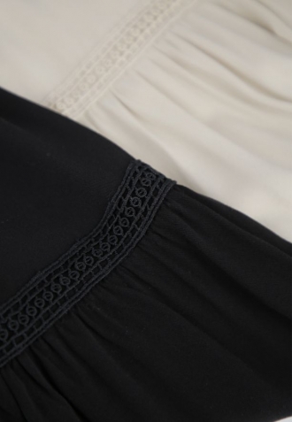 Letní sukni G-FLAVIA zdobí jemná krajka, která sukni jako dva volány prořezává. To dodává sukni romantický nádech, zatímco rozparek na levém boku decentně odhaluje nohu.