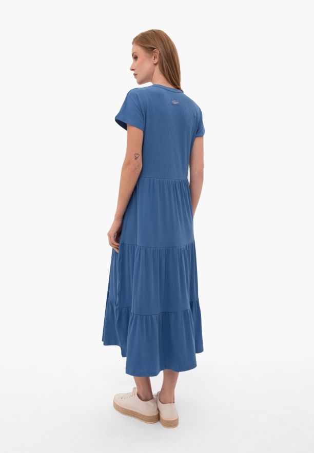 Hledáte šaty na jaro a léto? Určitě si prohlédněte dlouhé šaty G-OLEA. Šaty jsou ušity z pružného úpletu, který krásně sedí na postavě. Žebrovaný materiál dokonale odpovídá současným módním trendům a dlouhý střih, v pase přestřižený, je velmi pohodlný a neomezuje v pohybu. Půlkruhový výstřih dodává modrým šatům jemnost.