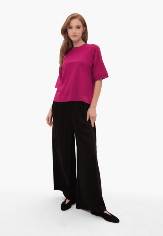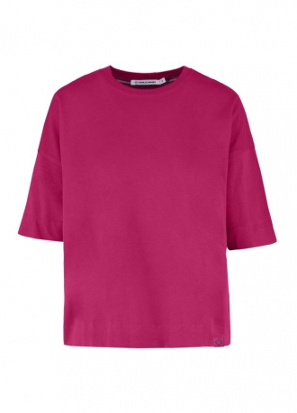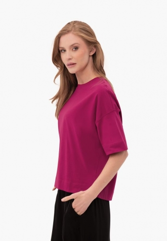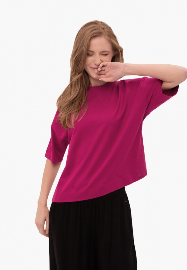 Růžové dámské tričko bylo vyrobeno z bavlny, díky čemuž je prodyšné a příjemné na dotek. Skvěle se bude hodit do teplých i chladnějších dnů.