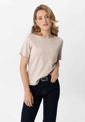 Volný, krabicový střih (comfort fit) trička nabízí volnost pohybu a skvěle vypadá na každé postavě, maskuje případné nedokonalosti a dodává stylizacím ležérnost. Centrálním bodem dámského trička T-AVI je subtilní, ale efektní třpytivý nápis "VOLCANO", který dodává tričku jemný, třpytivý akcent. Ideální pro každodenní nošení – jak k džínům, šortkám, tak i k elegantnějším sukním nebo kalhotám. Je to univerzální prvek šatníku, který vám umožní vytvořit mnoho módních a komfortních stylizací.