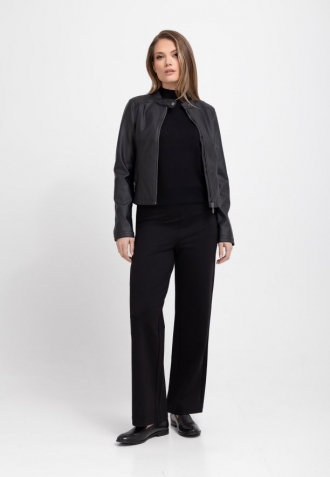 Dámské kalhoty v černé barvě R-ESTA mají střih Comfort Fit. Vyznačují se širokou, volnou a delší nohavicí bez lemů, díky čemuž se pěkně skládají na postavě. Dámské kalhoty mají elastický pas a sklady vzadu, což zaručuje ideální přizpůsobení postavě. V kombinaci s elastickým materiálem typu pěna zajišťují plnou volnost pohybu a pohodlí po celý den.
