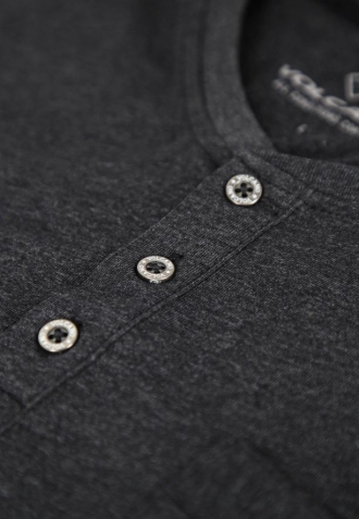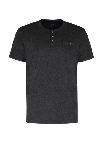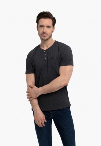Tričko T-WARU je vyrobeno z měkkého materiálu v odstínu grafitový melange. Jedná se o 100% bavlnu, která nabízí výjimečný komfort nošení po celý den. Charakteristický pro tento model výstřih Henley s krátkou knoflíkovou lištou dodává tričku eleganci a umožňuje regulaci hloubky výstřihu, přizpůsobujíc ho vašim preferencím. Praktická kapsa na hrudi s decentním knoflíkem nejen tvoří funkční prvek, ale také obohacuje design, dodávajíc mu casualový, a zároveň propracovaný charakter.