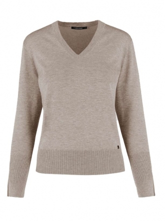 Svetr S-NELI, vyrobený z hladkého úpletu, zaujme jednoduchým, ale zároveň stylovým designem. Jeho přiléhavý střih Slim Fit podtrhuje ženské tvary a výstřih do V mu dodává jemnost a ženský šarm. Zakončení na manžetách a spodním lemu širokými žebrovanými manžetami zajišťuje nejen dokonalé přizpůsobení, ale také odolnost, díky čemuž se z něj budete těšit mnoho sezón. Je třeba zdůraznit, že manžety mají jemné, ozdobné rozparky a béžový svetr s výstřihem do V je k dispozici také ve velkých velikostech.