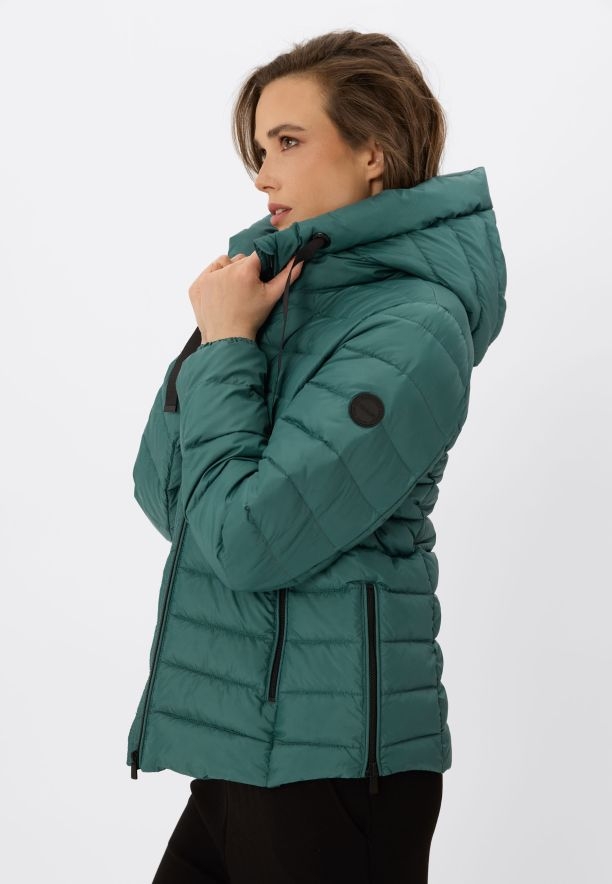 J-NORDIC je dámská přechodná bunda, která se hodí i do mírné zimy. Jedná se o dámskou bundu vypasovaného střihu, kterou se vyznačuje horizontálním prošíváním a zelenou barvou. Je vyplněna lehkým, syntetickým peřím, které má vynikající izolační vlastnosti. Díky tomu prošívaná bunda J-NORDIC účinně chrání před chladem. Polyesterová vlákna jsou také odolná proti vlhkosti, což znamená, že bunda rychle schne a udržuje si své vlastnosti i ve vlhkých podmínkách.