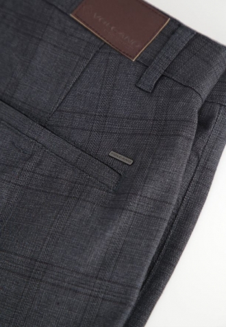 Pánské látkové kalhoty R-ASTON se vyznačují decentním vzorem. Jejich střih Regular Fit a károvaný vzor dokonale spojuje klasiku s moderností. Grafitová barva je prolomena decentním kárem typu glen check, které vytváří složitý, avšak tlumený vzor. Tento jemný vzor dodává kalhotám eleganci a umožňuje jejich všestranné použití – od casualových po smart casualové stylizace.