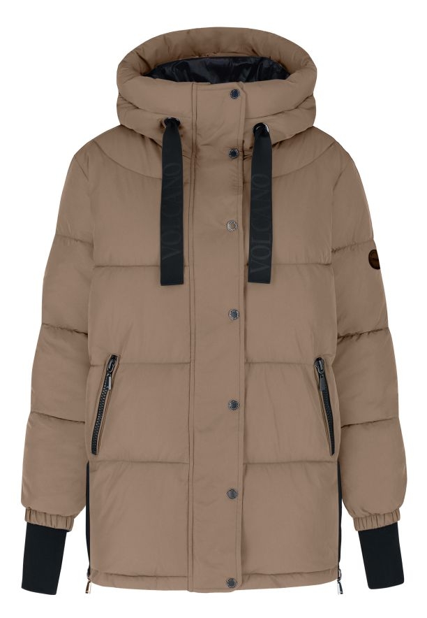 Prošívaná bunda v béžové barvě je vybavena dvěma praktickými bočními kapsami, které jsou se zapínáním na zip, což umožňuje bezpečné uložení drobných předmětů. Další předností jsou boční zipy, které umožňují regulaci šířky bundy, přizpůsobujíc ji individuálním potřebám a postavě. Komfort nošení zvyšují také elastické a delší vnitřní manžety, které dokonale chrání před chladem a zabraňují vyhrnování rukávů.