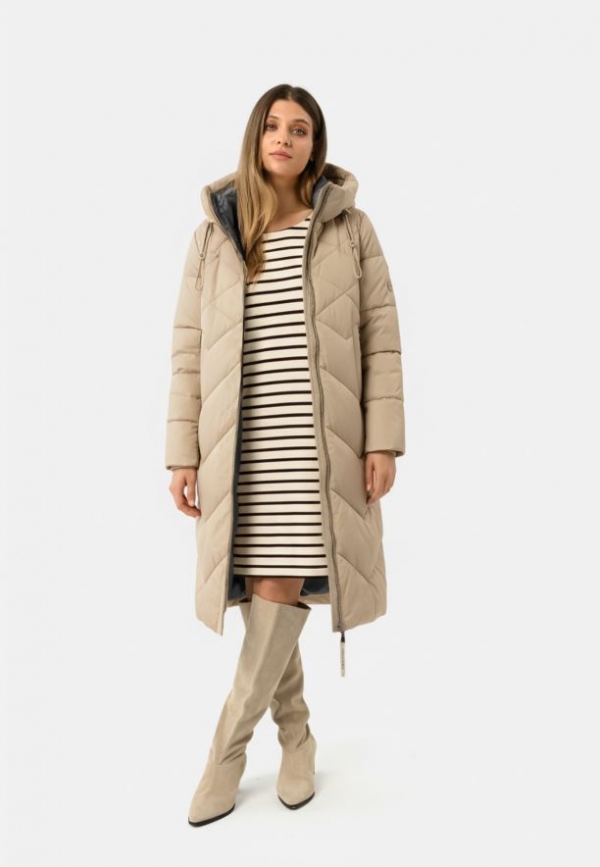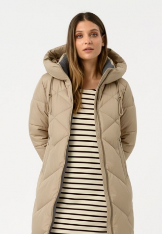 Hledáte teplý, praktický a módní kabát na zimu? Určitě se podívejte na prošívaný kabát J-CELESTE. Tento dlouhý zimní kabát vyrobený z odolného vnějšího materiálu má teplou polyesterovou výplň a podšívku, které společně zajišťují optimální tepelný komfort. Jeho délka ke kolenům a prošívání ve formě šikmých stehů dodávají postavě lehkost a zároveň účinně izolují proti chladu. Velká kapuce s regulací a vysoký stojáček chrání před větrem a mrazem, nabízí dodatečnou ochranu v chladných dnech. Rukávy zakončené vnitřními manžetami účinně blokují chlad a lehce projmutý střih decentně zvýrazňuje postavu. Tento model se hodí jak pro každodenní stylizace, tak pro zimní výlety.
