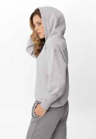 Pokud hledáte módní a pohodlnou mikinu, tak si určitě prohlédněte mikinu B-ROSI. Tato dámská mikina v klasickém odstínu šedé barvy ideálně spojuje klasický komfort s moderním designem. Její volný střih zaručuje plnou volnost pohybu a dokonalé přizpůsobení každé postavě. Mikina má praktickou kapuci stahovanou páskami, které jsou ozdobeny módním, vzorovaným detailem, dodávajícím celku originalitu. Elastické lemy na manžetách zajišťují optimální udržení tvaru a termální komfort.