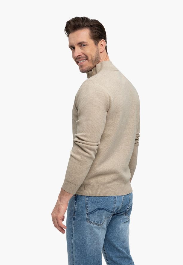 Pánský svetr S-NATAN **se zapíná na kovový zip**, což usnadňuje oblékání a svlékání, a také umožňuje regulaci teploty. **Stojáček** dodává eleganci a chrání před chladem, díky čemuž je svetr praktickou volbou pro každou roční dobu. Naopak **spodní lem a manžety zakončené lemem** zajišťují dokonalé přizpůsobení a zabraňují shrnování materiálu. Svetry tohoto typu lze nosit mnoha způsoby, např. na košili, tričko nebo rolák.