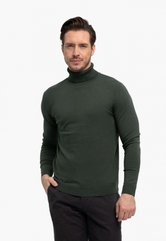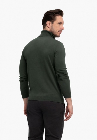 Zelený pánský rolák S-MAX má klasický střih a vyznačuje se minimalistickým designem. Protože je ušitý z lehké pleteniny s klasickou vazbou, osvědčí se jak na podzim, v zimě, tak i na jaře v chladnější den. Pletenina je měkká a příjemná na dotek, což zvyšuje komfort nošení.