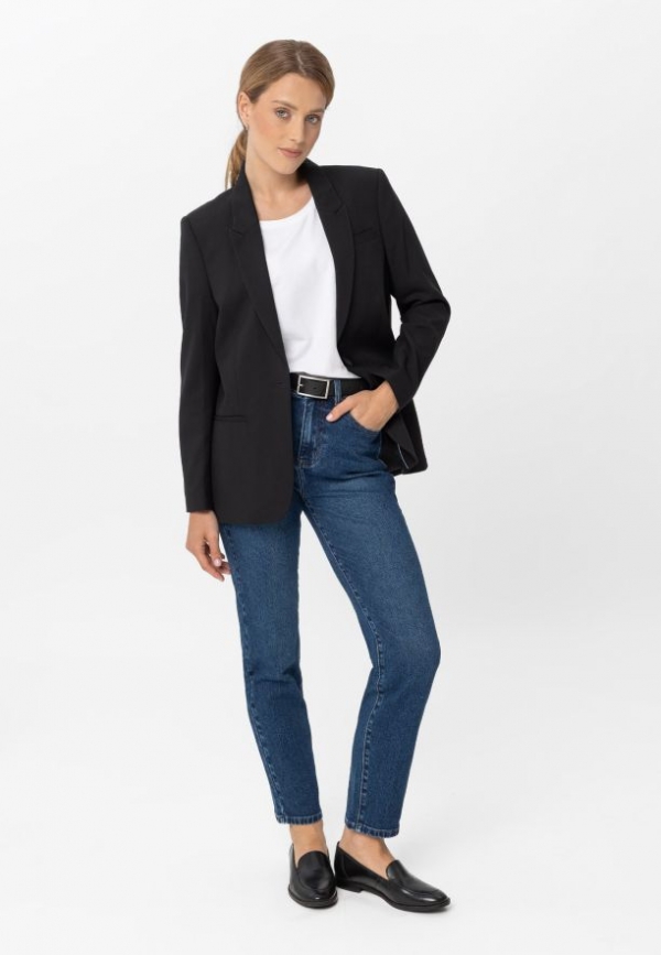 D-SANA jsou džíny, které mají jednoduchou nohavici. Díky tomu nejsou příliš těsné ani příliš volné, což z nich činí ideální volbu pro ženy, které si cení pohodlí. Použili jsme u nich regularní pas, který je příznivý pro různé typy postav, protože opticky zeštíhluje pas a prodlužuje nohy. V kombinaci s jednoduchou nohavicí celek způsobuje, že postava vypadá více proporčně.