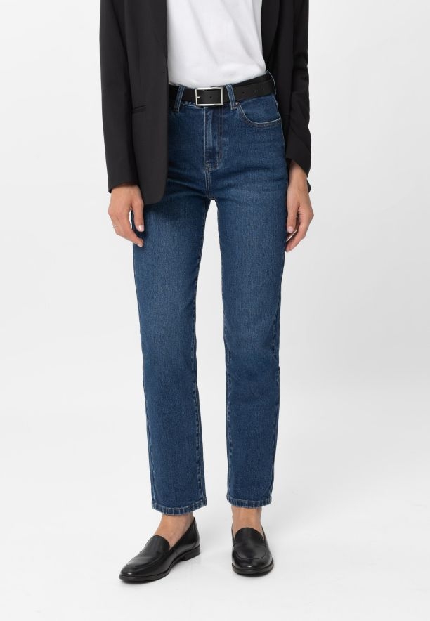 Dámské džínové kalhoty v klasickém stylu. Džíny D-SANA jsou ušité z modré bavlny s přídavkem elastanu. Díky tomu jsou prodyšné a dobře se skládají na postavě. Modrá barva dodává kalhotám klasický a nadčasový vzhled.