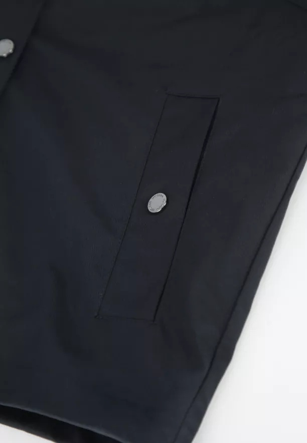 Bunda tohoto střihu je vynikajícím základem jarního šatníku, protože její tlumená, tmavě modrá barva a minimalistický střih nabízejí obrovské možnosti stylingu. Pokud chcete vytvořit klasický každodenní look, můžete bundu zkombinovat s džínami a košilí, což vytvoří svěží a profesionální image ideální do práce. V chladnějších dnech bude vypadat skvěle v kombinaci s tenkým rolákem. Pro milovnice stylu sportovní elegance bude zajímavým řešením vzít si bundu k bílým kalhotám typu chino a módním teniskám, což dodá celé postavě lehkost a moderní charakter. Tato bunda se stejně dobře osvědčí v duetu se vzdušnými šaty a těžšími botami, čímž vytvoří zajímavý kontrast mezi jemností materiálu a strohým provedením svrchního oděvu.