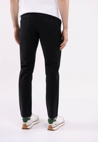 Pánské kalhoty R-PARKS mají nadčasový design, který se hodí ke všemu! Všestrannost není jedinou vlastností těchto kalhot. V první řadě jsou pohodlné. Černé kalhoty R-PARKS mají střih Regular, což znamená, že kalhoty nejsou ani příliš těsné na postavu, ani příliš volné. Tento střih je vhodný pro muže s klasickým tvarem postavy. Kalhoty R-PARKS jsou klasické chinos kalhoty se dvěma šikmými kapsami a jednou malou kapsičkou vpředu a dvěma průhmatovými kapsami s knoflíkem vzadu. Zajímavou ozdobou je i vazba látky - materiál má mírně vypouklou strukturu!