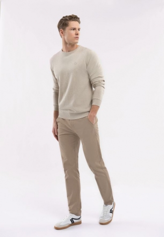 Svetr S-RADO je krémové barvy a hladký. Jednoduchý design je obohacen o detail v podobě vyšívaného loga značky na levé straně. Svetr S-RADO je dostupný také v Plus Size.