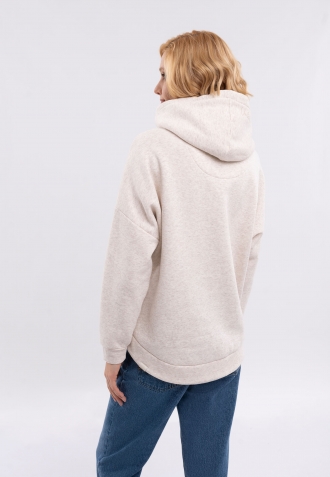 Pokud máte rádi oversized oblečení, mikinu B-SIGI si určitě zamilujete. Béžová barva přitahuje pozornost! Mikina má volný střih a oversize efekt navíc podtrhuje snížená linie ramen a prodloužená záda. Mikina má teplou a prostornou kapuci, díky čemuž je ideální pro chladnější dny. Je vyrobena z hřejivého fleecu, jehož vnitřek je podšitý měkkým, příjemným prachovým peřím.