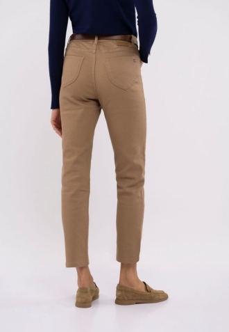 D-AGNES 8 jsou dámské džínové kalhoty v béžové barvě. Jsou vyrobeny z pružné a na dotek příjemné tkaniny a poskytují celodenní pohodlí. Jejich střih Straight Leg neboli rovné nohavice dodávají volnost pohybu a hodí se k různým druhům obuvi a doplňků. Vysoký střih kalhot nejen zvýrazňuje siluetu, ale také poskytuje dodatečnou oporu břichu a opticky prodlužuje nohy. Tři kapsy vpředu, včetně jedné malé, a dvě malé půlkruhové kapsy vzadu jsou praktické a umožňují uložení drobných předmětů.