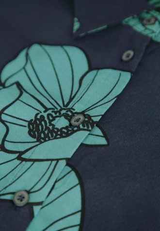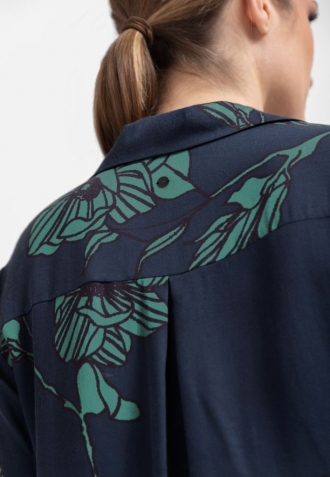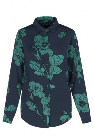 Košile má volný, zaoblený spodní okraj, který se skvěle nosí jak zastrčený, tak volně. Vzor s velkými květy přitahuje pozornost. Květinový vzor v kontrastních barvách dodává charakter – je to výrazný prvek stylizace, který celku propůjčuje umělecký, moderní akcent. Je to ideální volba pro stylizace s látkovými kalhotami nebo oblíbenými džíny.