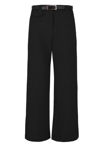 Černé kalhoty R-MILEN jsou elegantní kalhoty s nohavicemi wide leg, které si jistě zamilujete. Tyto kalhoty ušité z měkkého a odolného materiálu zajišťují pohodlí a volnost. Volný střih neomezuje pohyb, netlačí, zajišťuje komfort po celý den, i při dlouhém sezení. A to není jejich jediná výhoda. Kalhoty typu palazzo s širokými nohavicemi umožňují modelovat postavu (např. zeštíhlit nohy - pokud přidáme boty na podpatku) a maskovat případné nedokonalosti - např. příliš široká stehna.