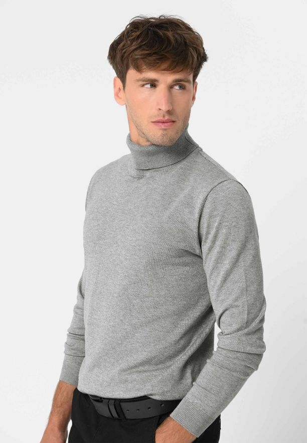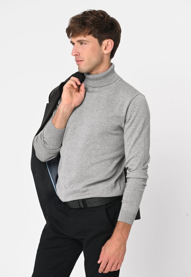 Šedý pánský rolák S-MAX má klasický střih a vyznačuje se minimalistickým designem. Protože je ušitý z lehké pleteniny s klasickou vazbou, osvědčí se jak na podzim, v zimě, tak i na jaře v chladnější den. Pletenina je měkká a příjemná na dotek, což zvyšuje komfort nošení.