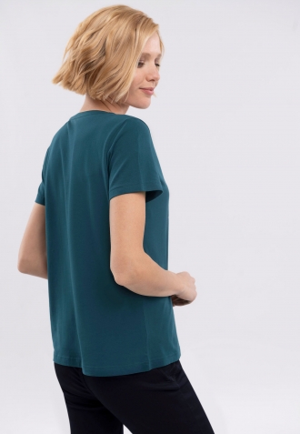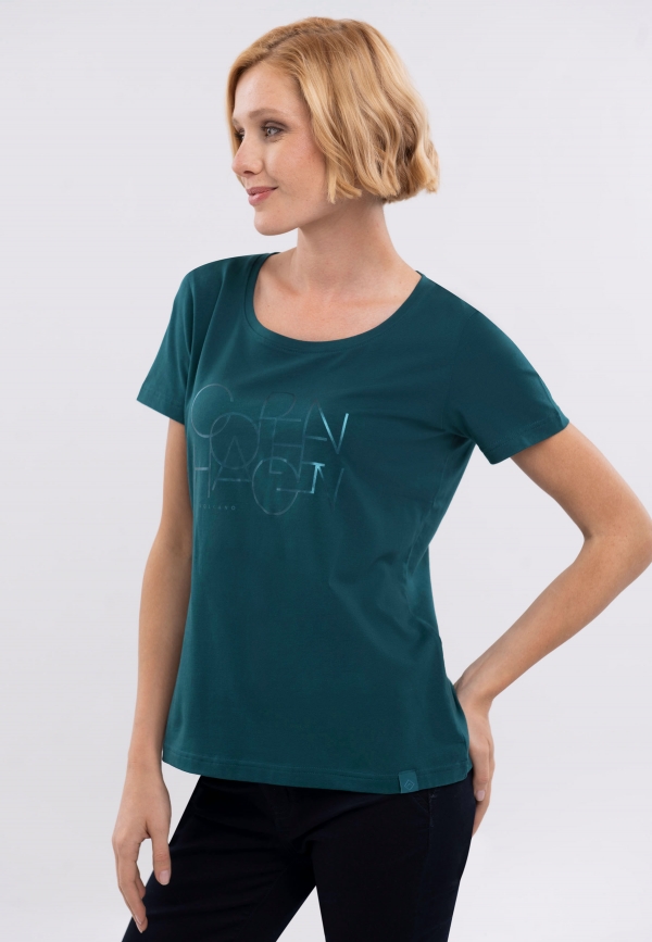 T-COPENHAGEN je dámské tričko regular fit střihu. Klasický střih je doplněn krátkými rukávy a půlkulatým výstřihem zpevněným páskem. Všechny tyto prvky zajišťují, že tričko dobře padne a nabízí volnost pohybu. K tomu přispívá i použitý materiál - bavlna s elastanem.