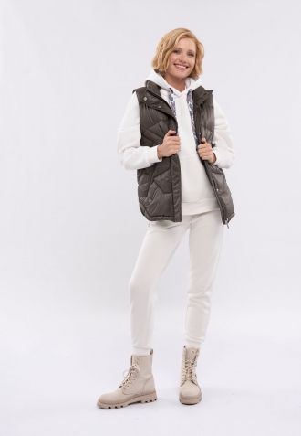 V-ADEL je vesta, kterou si zamilujete nejen pro její módní oversized střih, ale také pro její barvu. Tato podzimně-zimní vesta má hnědou barvu, která se skvěle hodí ke světlým outfitům. Můžete ji nosit samostatně nebo přes džínovou bundu či teplou mikinu. Je vyplněna umělým prachovým peřím, takže vás příjemně zahřeje.