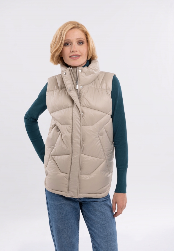 Pokud hledáte módní alternativu k tradiční krátké prošívané dámské vestě, pak si určitě prohlédněte naši novou dámskou vestu V-ADEL. Má jednoduchý střih a nápadné prošívání. Navíc vyniká vysokým stojáčkem, který příjemně obepíná krk a chrání před větrem. Bunda bez rukávů má zapínání na zip s klopou, která rovněž chrání před větrem. Dvě boční kapsy jsou ideální pro uložení telefonu, klíčů nebo čepice.