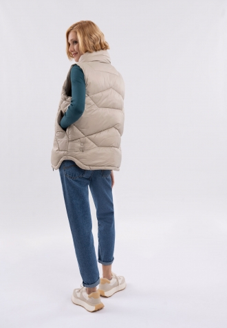 V-ADEL je vesta, kterou si zamilujete nejen pro její módní oversized střih, ale také pro její barvu. Tato podzimně-zimní vesta má krémovou barvu, která se skvěle hodí ke světlým outfitům. Můžete ji nosit samostatně nebo přes džínovou bundu či teplou mikinu. Je vyplněna umělým prachovým peřím, takže vás příjemně zahřeje.