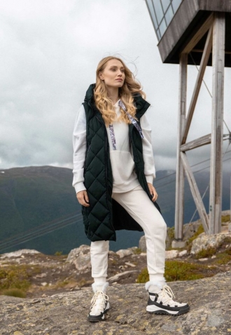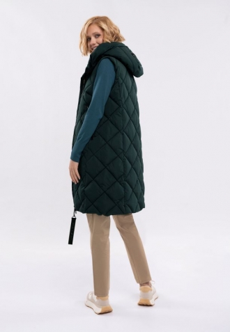 Dlouhá prošívaná vesta V-LEA je ideální volbou pro chladnější dny. Je vyrobena z matné tkaniny s diamantovým prošíváním a poskytuje teplo a pohodlí. Vesta má navíc podšívku, která zvyšuje její funkčnost a pohodlí. Díky jednoduchému dlouhému střihu s volnou spodní částí se skvěle hodí k různým outfitům a dodává jim moderní a elegantní nádech.